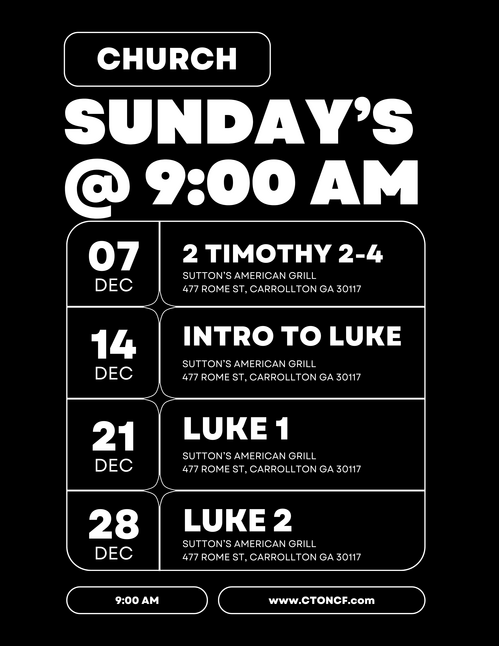 The primary format of corporate Bible study Carrollton Christian Fellowship is active in is Verse-By-Verse because of the previous two points - God's desire to impact His people through His complete Word and Revelation of Himself which culminates in and through the work and ministry of Jesus Christ.